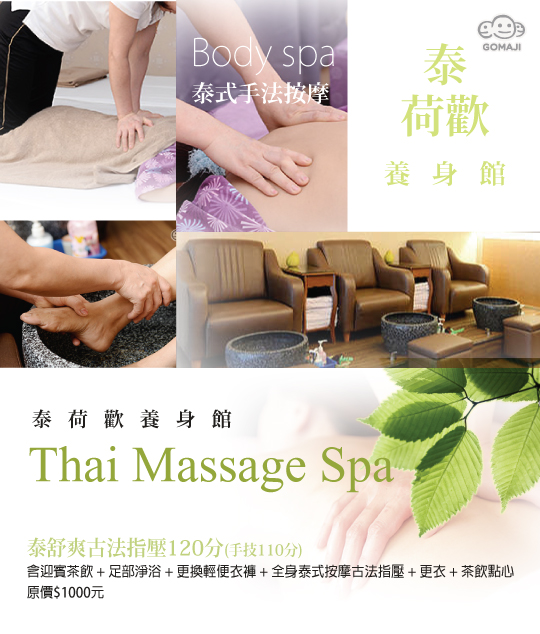 泰荷歡養身館 - 108593是最近關注的一項還算不錯的商品,一樣是在Gomaji上發現的。我真的非常喜歡逛Gomaji,尤其很多東西價格都很不錯,也有不少優惠券可以用,下面是賣場提供的商品簡介: